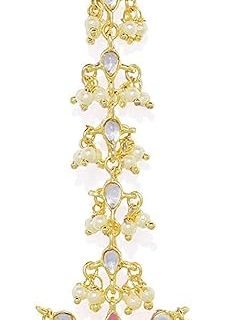 ACCESSHER Gold Plated Pearl Nose Ring/nath with Chain for Women