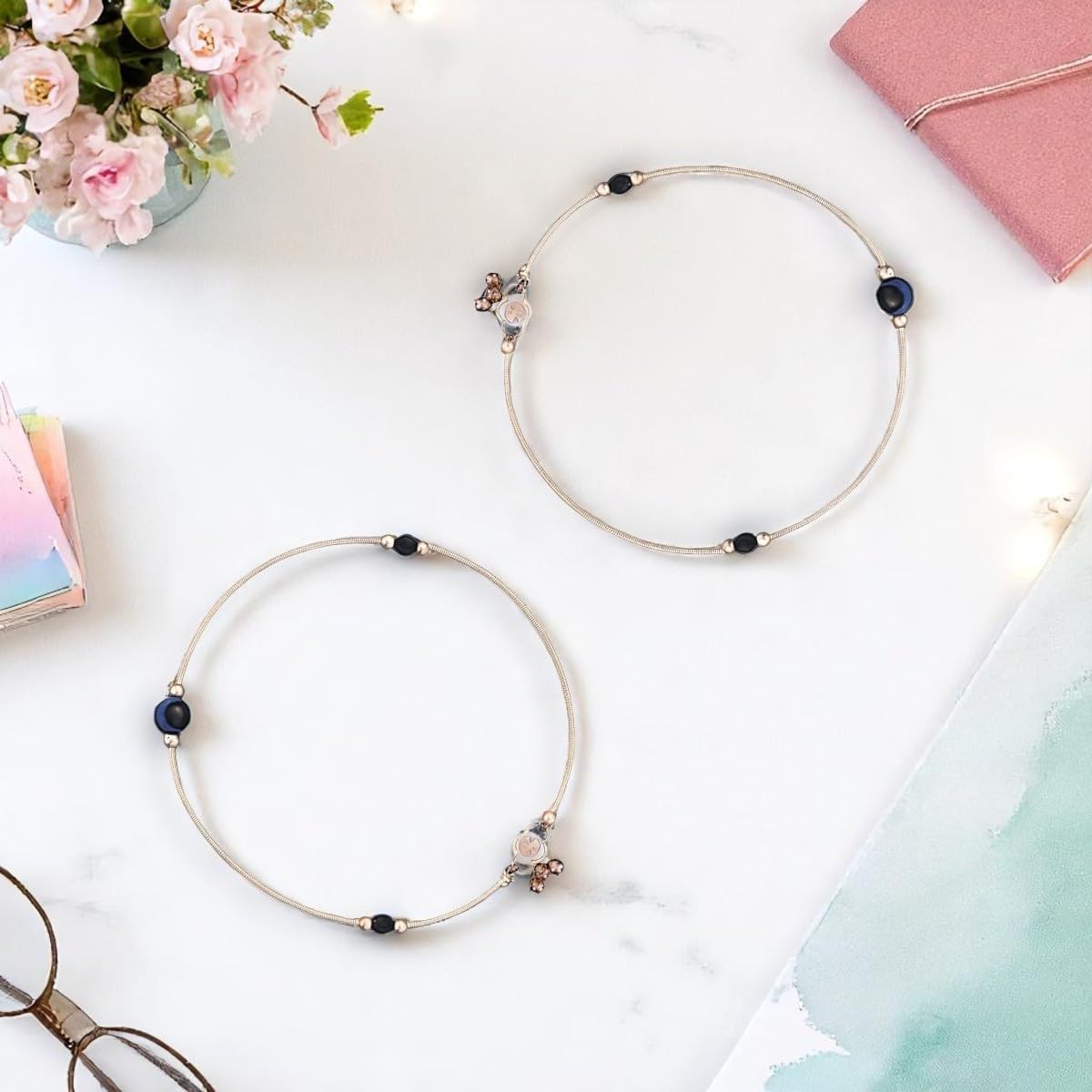 AccessHer presents a graceful pair of oxidised silver-plated anklets for women and girls, designed to bring a harmonious blend of tradition and modern charm. These anklets, also known as payal, are crafted with a unique leafy design and adorned with melodious ghungroos that gently chime with every step. Their oxidised silver plating gives them a rustic, antique finish, ideal for enhancing both ethnic and Indo-western outfits. Made with flexibility in mind, the anklets fit comfortably around the ankles and can be worn for extended periods without discomfort. Whether you’re accessorising for a wedding, festival, or simply adding flair to your everyday look, these anklets make a versatile addition to your jewellery box. The sound of the ghungroos adds a soft, rhythmic charm, turning every movement into a celebration. These make thoughtful gifts for women and girls who appreciate handcrafted accessories. Whether worn barefoot or with heels, these flexible silver payals add elegance, tradition, and uniqueness to your overall appearance.