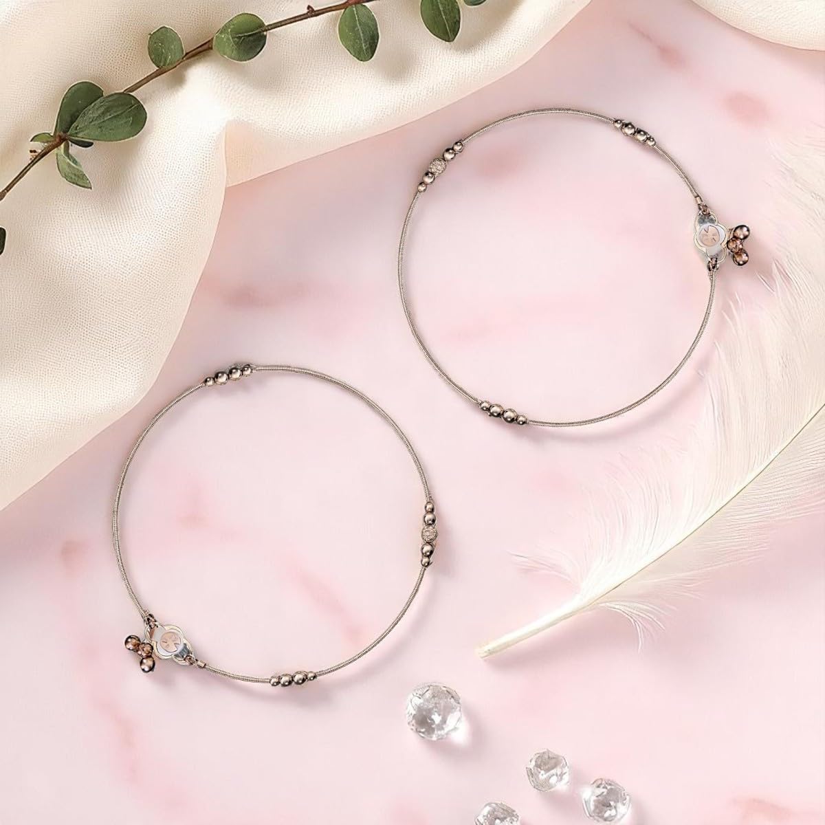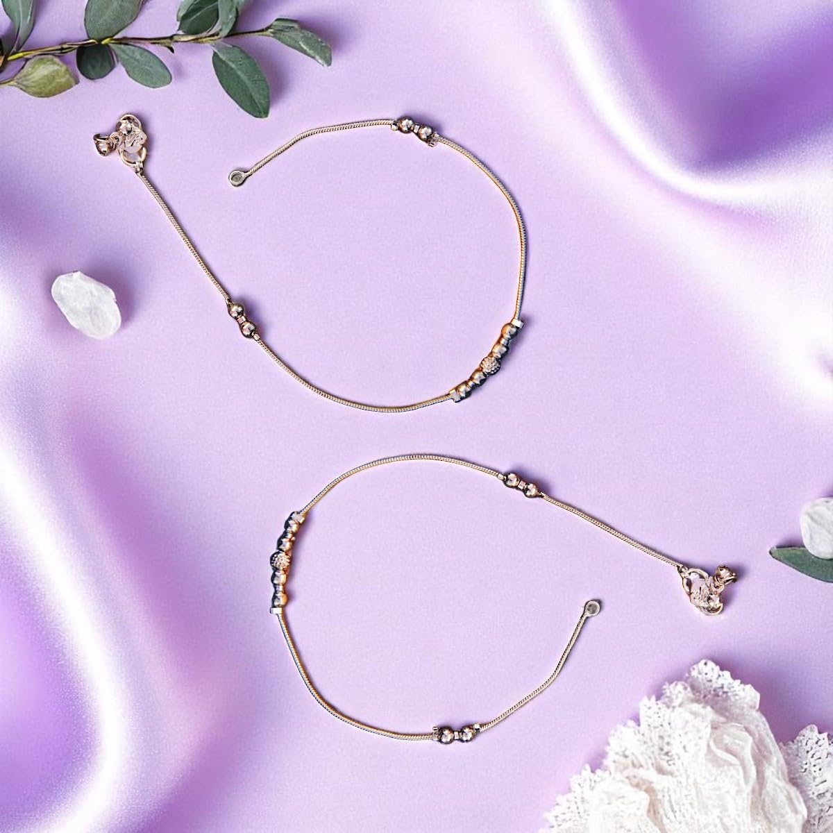AccessHer presents a graceful pair of oxidised silver-plated anklets for women and girls, designed to bring a harmonious blend of tradition and modern charm. These anklets, also known as payal, are crafted with a unique leafy design and adorned with melodious ghungroos that gently chime with every step. Their oxidised silver plating gives them a rustic, antique finish, ideal for enhancing both ethnic and Indo-western outfits. Made with flexibility in mind, the anklets fit comfortably around the ankles and can be worn for extended periods without discomfort. Whether you’re accessorising for a wedding, festival, or simply adding flair to your everyday look, these anklets make a versatile addition to your jewellery box. The sound of the ghungroos adds a soft, rhythmic charm, turning every movement into a celebration. These make thoughtful gifts for women and girls who appreciate handcrafted accessories. Whether worn barefoot or with heels, these flexible silver payals add elegance, tradition, and uniqueness to your overall appearance.