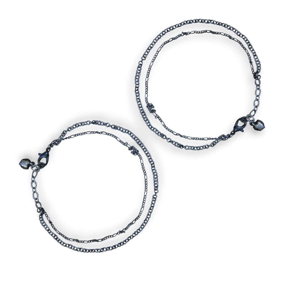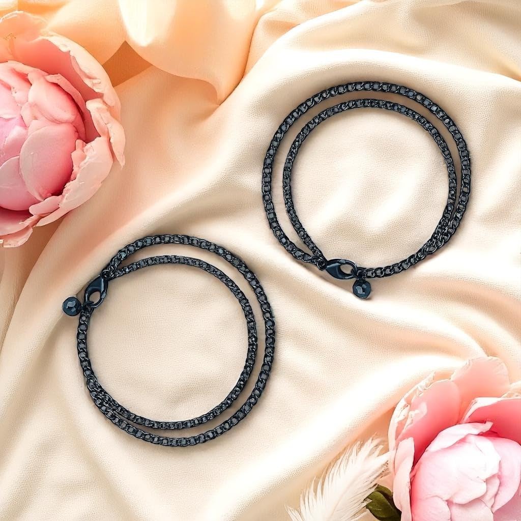 AccessHer presents a graceful pair of oxidised silver-plated anklets for women and girls, designed to bring a harmonious blend of tradition and modern charm. These anklets, also known as payal, are crafted with a unique leafy design and adorned with melodious ghungroos that gently chime with every step. Their oxidised silver plating gives them a rustic, antique finish, ideal for enhancing both ethnic and Indo-western outfits. Made with flexibility in mind, the anklets fit comfortably around the ankles and can be worn for extended periods without discomfort. Whether you’re accessorising for a wedding, festival, or simply adding flair to your everyday look, these anklets make a versatile addition to your jewellery box. The sound of the ghungroos adds a soft, rhythmic charm, turning every movement into a celebration. These make thoughtful gifts for women and girls who appreciate handcrafted accessories. Whether worn barefoot or with heels, these flexible silver payals add elegance, tradition, and uniqueness to your overall appearance.