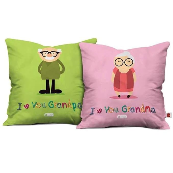 Indigifts Grandpa Grandma Cushions with Filler, 12×12 inches, Multicolour, Set of 2, Polycotton|Home Decor| Gift for Grand Parents | Gift for Parents | Gift for Dada Dadi|Gift for Grandparents Day