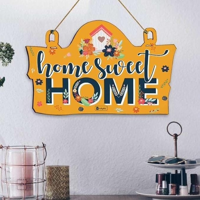 Indigifts Home Sweet Home Printed Wooden Home Entrance Decor 11.05×7 Inches – Home Decoration| Home Decor for Wall | Material: 4mm Medium Density Fiber made out of wooden residual glued under heat