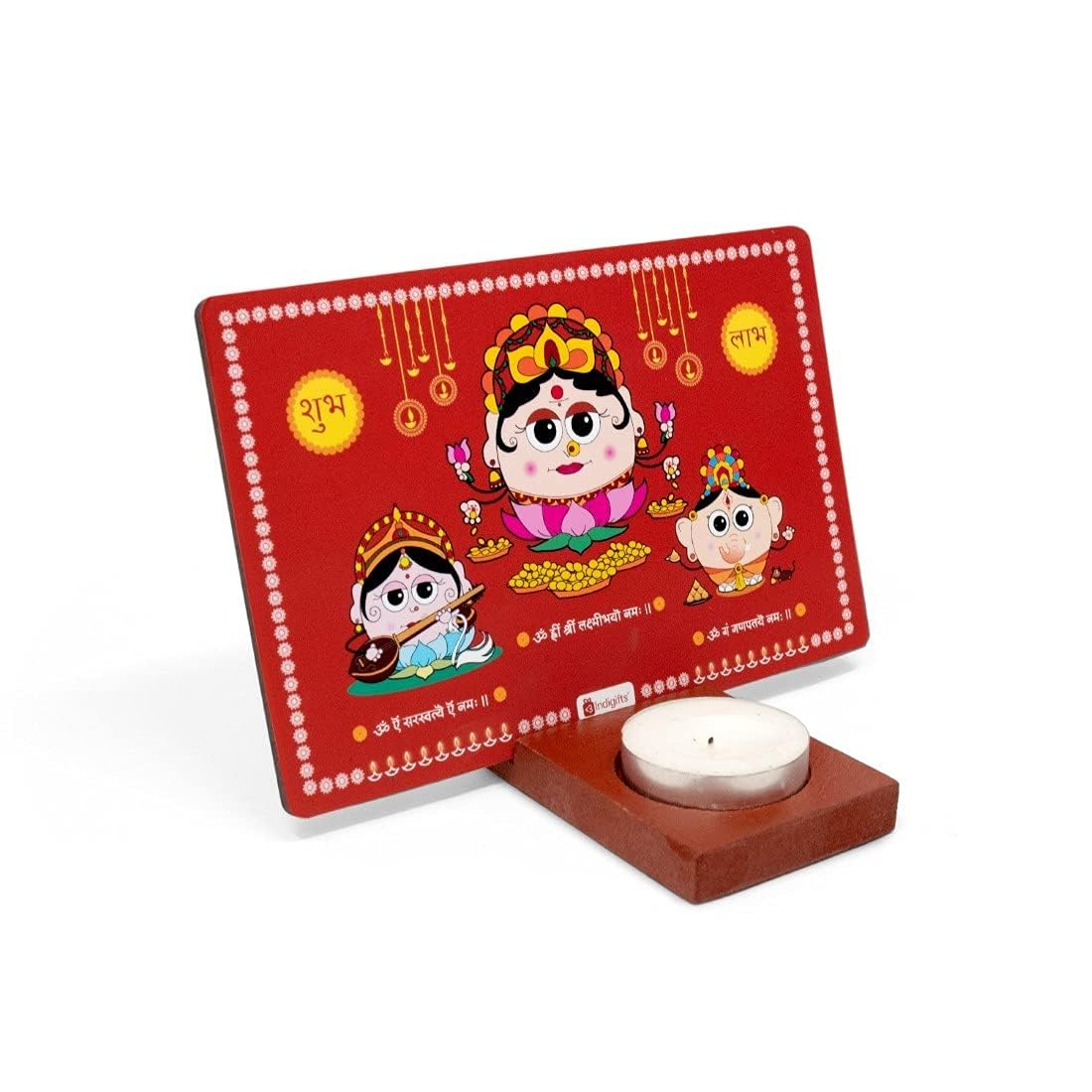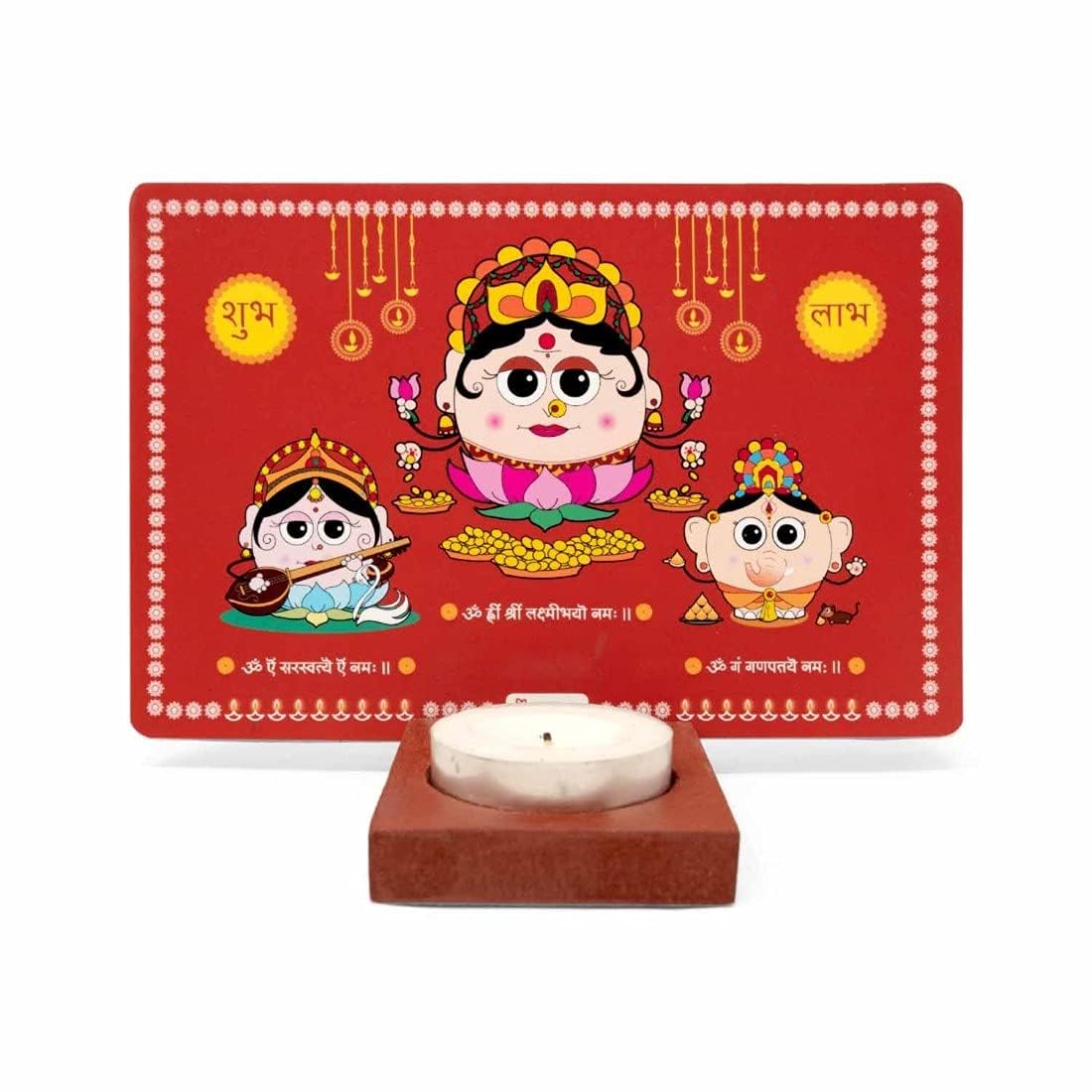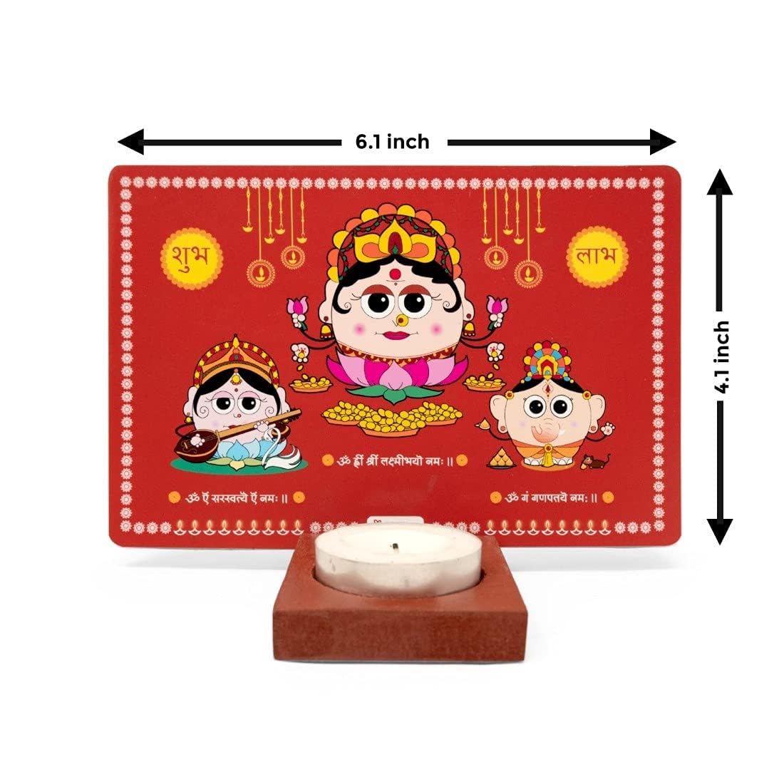 DIYA STAND POSTER:Let Laxmiji, Saraswatiji and Ganeshji brighten up every puja in your home! These cute but spiritual diya is idle for your pooja room for diwali poojan, as normal sticker will get distort after poojan but it will be stay same year long. Product Details: Package Content: 1 Laxmi Ganesh Printed Wooden Poster with Candle StandMaterial:Sandle Wood Features: Classy Artistic PieceAnti-CorrosionExcellent DurabilityMatte Finished PrintThe product is designed and printed in India. Inspired by the roots of India we strive with a mission to Design for Life with our exclusive designer products with the only goal to delight you on any Special Occasions.