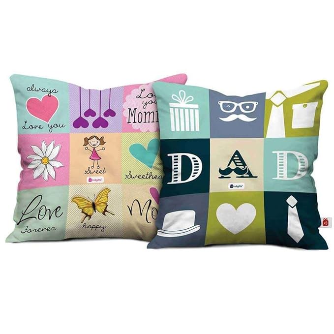 GIFT FOR Parents: Are you looking for best gift for Mom Dad, Cool gifts for papa or birthday gift for dad??? Then get your hands on this designer cushion cover which is as unique & special as the bond that you share with your Father and Mother, Package Content: 1 Cushion Cover, 1 Vacuum Packed Conjugated Fiber Filler, Dimension: Cushion: 12 x 12 inch, Material: Cushion: Digitally Printed Soft Poly Satin Features: Cushion: 170-180gms High Quality Fiber Filler, Overlap Envelop Backing, Outline Seam Stitch, An inside layer of foam with cotton lining, Double Interlock from inside.