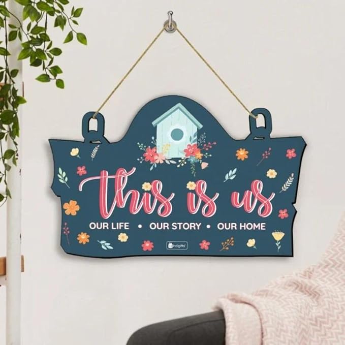 Indigifts This is Us Printed Wooden Door Hanging | Wall Hangings for Home Decoration| Home Entrance Sign Board | SIZE: 11.05 Inches x 7 Inches (28×18 cm) | COLOR: Blue | 1 Wall Hanging Board