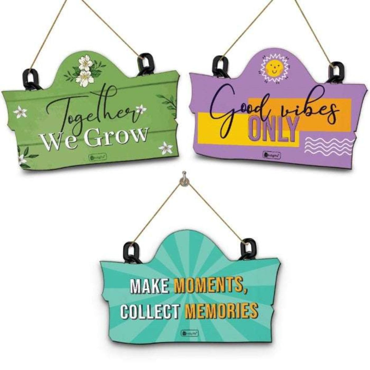 Indigifts Wall Hanging For Home Wooden Mini Wall Hanging Board Set Of 3- Wall Hanging Decorative Items| Mini Wall Hanging Décor| Garden Wall Hanging| Good Vibe Wall Hanging| Wall Decor for Living Room