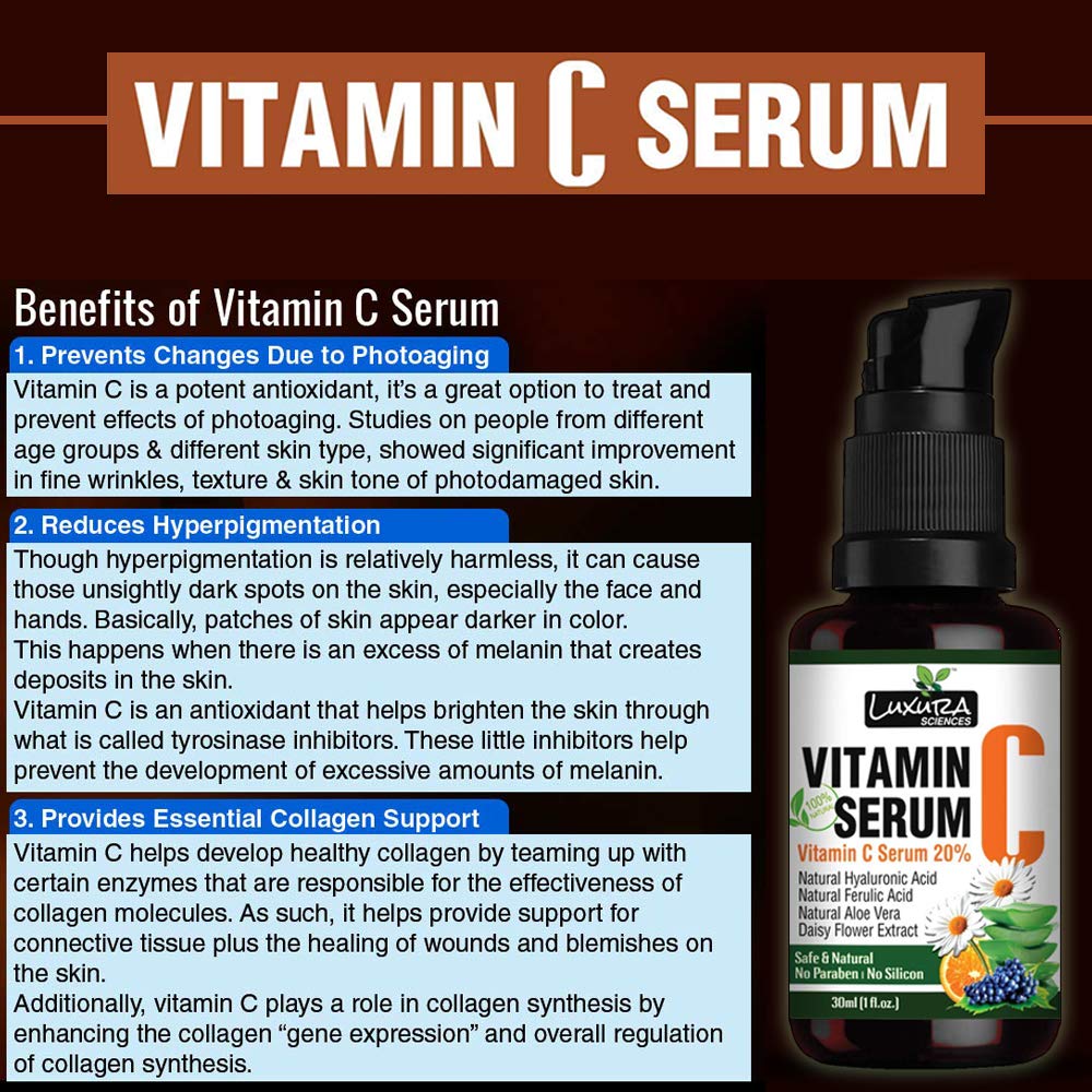 Luxura Sciences 20% Vitamin C Serum for Skin Glow and Anti Ageing |Effective Skin Brightening Vitamin C Serum|30 ml | Scar and Dark Spot Reduction | Healthy Glow