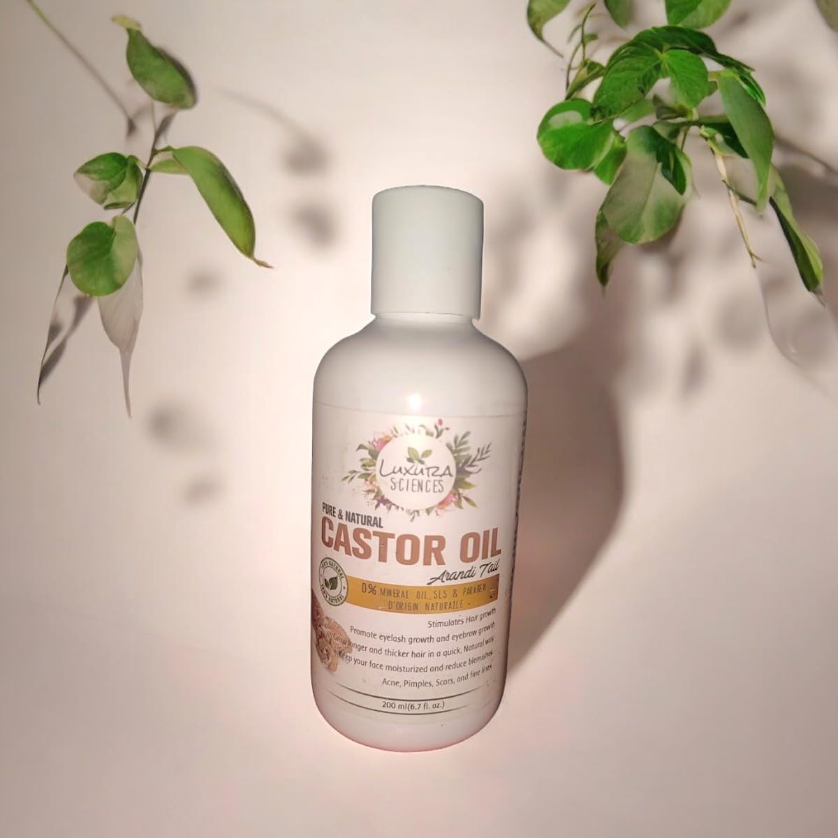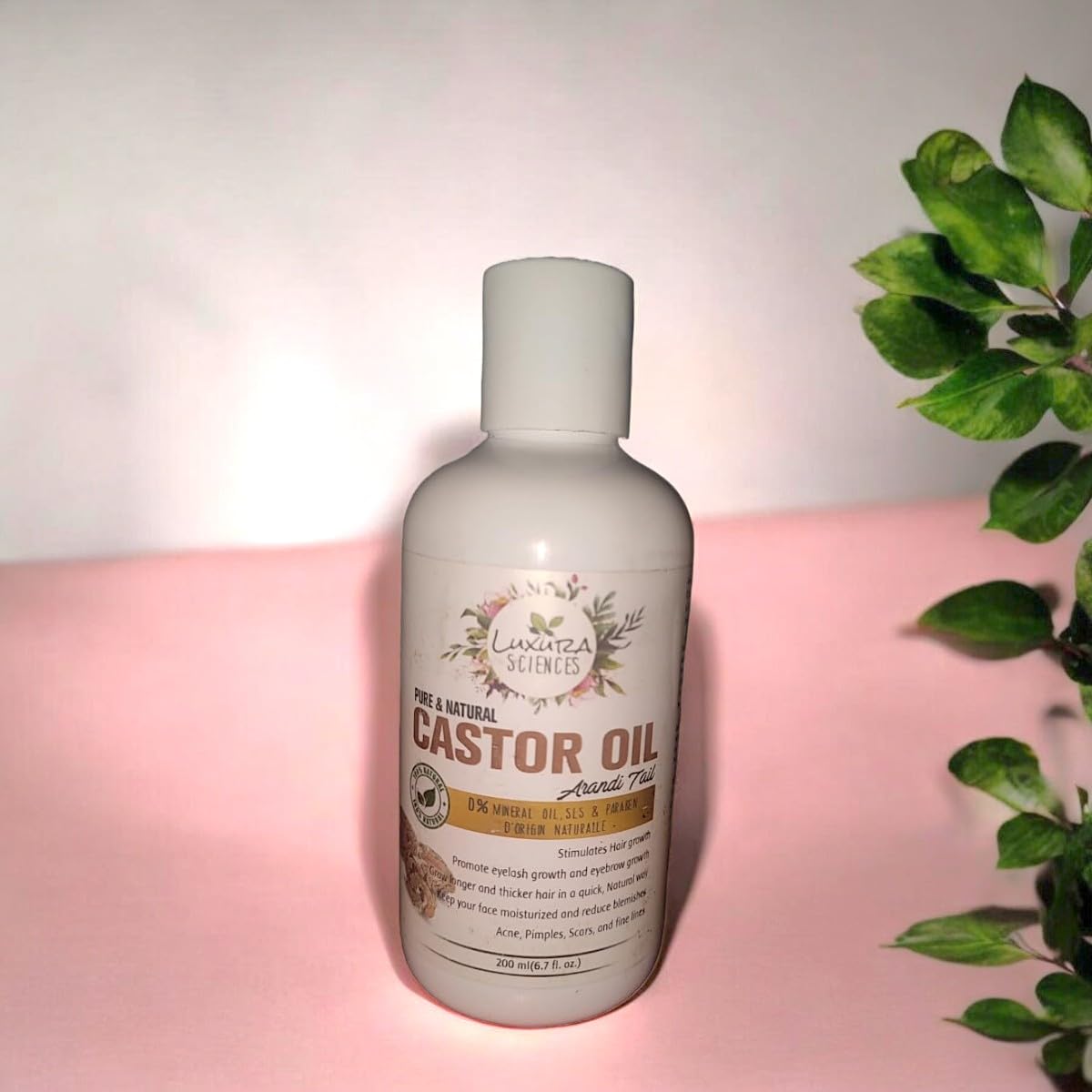 “Unlock the power of nature with Luxura Sciences Castor Oil, a rich, nutrient-packed oil designed to nourish, strengthen, and revitalize your hair, scalp, eyebrows, and lashes. Sourced from premium-quality castor seeds, this cold-pressed, unrefined oil is minimally processed, ensuring that all the essential fatty acids, vitamins, and antioxidants remain intact for maximum benefits. Boost Hair Growth & Strengthen Strands Packed with ricinoleic acid and omega-6 fatty acids, Luxura Sciences Castor Oil penetrates deep into the scalp, helping to nourish hair follicles, reduce breakage, and promote thicker, stronger hair growth. With regular use, you can experience fuller, healthier locks that radiate natural beauty. Deep Moisturization & Frizz Control Dry, frizzy hair? This intensely hydrating oil acts as a natural conditioner, sealing in moisture, taming flyaways, reducing split ends, and improving hair manageability. Say goodbye to brittle, lifeless strands and hello to silky-smooth hair that shines with health. Multipurpose Beauty Oil for Hair, Brows & Lashes Luxura Sciences Castor Oil isn’t just for hair! Apply it to your eyebrows and eyelashes to promote thicker, fuller growth. Simply use a clean mascara wand or cotton swab to apply a small amount before bed (avoid direct eye contact). All-Natural & Chemical-Free Our castor oil is cold-pressed, and free from harsh chemicals, parabens, sulfates, and artificial fragrances. We believe in harnessing the power of nature without unnecessary additives, making it safe for all hair types, including color-treated and sensitive scalps. Easy to Use – DIY Hair & Scalp Treatments Use it as a pre-wash treatment by massaging a few drops into your scalp and hair for deep nourishment. For an extra boost, mix it with coconut or argan oil to create a luxurious DIY hair mask for intensive hydration and scalp care.”