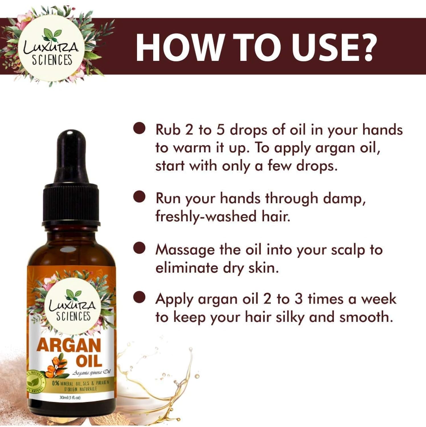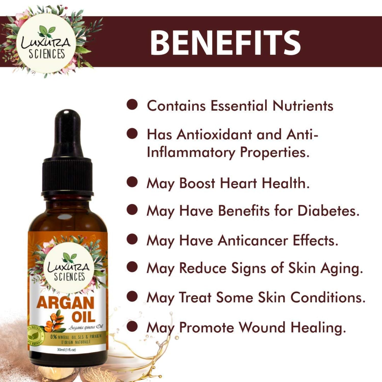 Luxura Sciences Essential oils for Hair | Skin | Nails | Aromatherapy (Argan, 15ml)