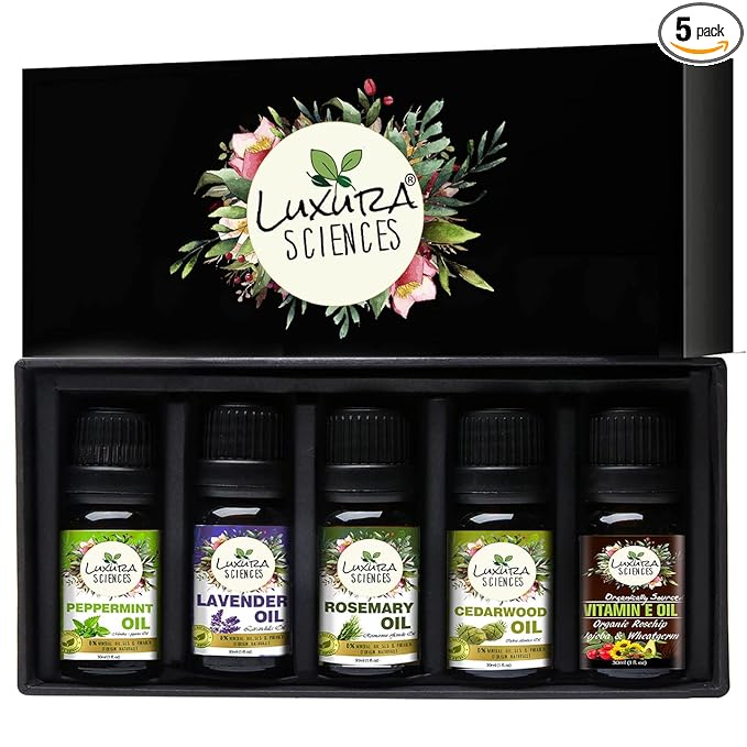 Luxura Sciences Organic Essential Oil Combo Pack of 5 Oils, ANTI HAIR FALL Essential oil kit 5x15ml