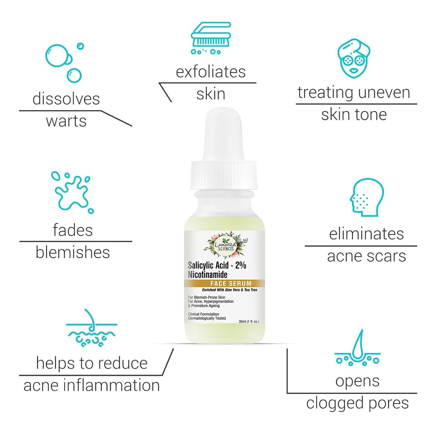 Luxura Sciences Salicylic Acid 2% Face Serum, Niacinamide Serum 30ml – Mild Exfoliant – Pore Reduction, Oil Control, and Acne Spot Treatment | Improves Skin Elasticity and Reduces Fine Lines