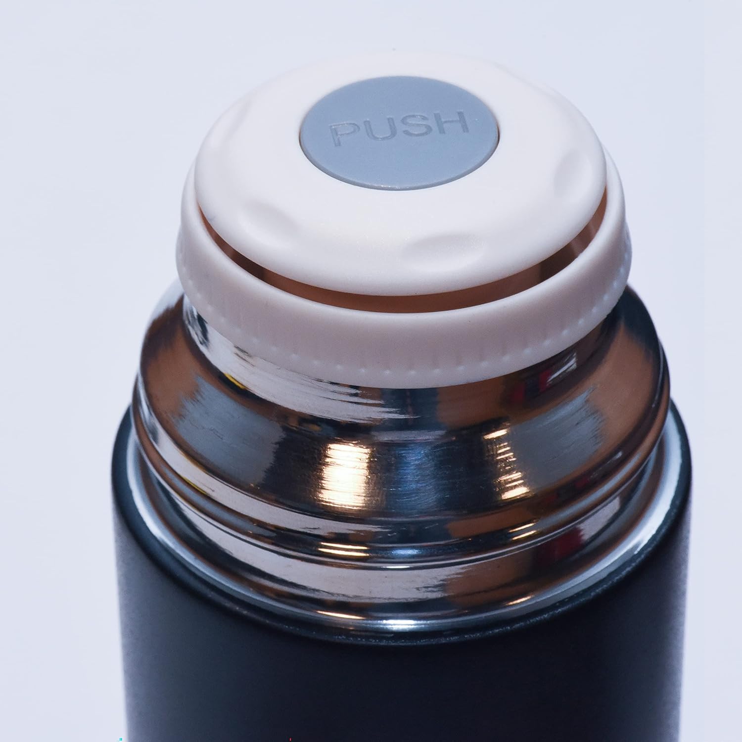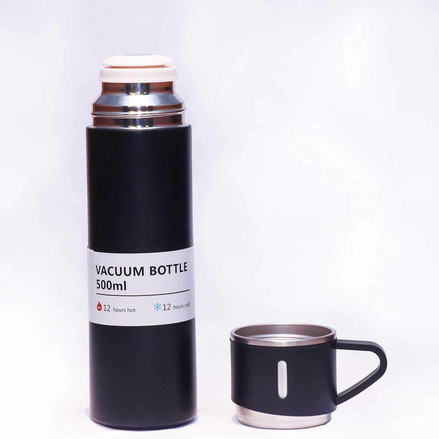 Brand ?Swarg Kitchen Capacity 500 Ml Colour ?Black Special Feature ?Dishwasher_safe Product Dimensions Centimeter Item Weight ?450 grams Material ?Stainless Steel Number of Items ?1 PatterFlip Top Country of Origin India Package Contents: 1 vacuum flask set insulated double-walled Bottle, Color: Black, Material: Stainless Steel, Capacity: 500 ml, Size: 18 Ouce Double walled Vacuum insulated technology keeps beverages hot or cold for 12 hours, Inner coating for better temperature retention. A unique bottle that makes pouring completely hassle-free and spill-free, rust proof. Condensation & sweat / straw free thermal: No condensation on outer body even while carrying icy cold water completely sweat free. Leak proof & non-toxic: leak proof design, contains no toxins completely BPA and phtha Both its interior and exterior surfaces of this thermos have been fabricated using 18/8 quality stainless steel, making it rustproof products. It has a capacity of 500 ml and comes with a transparent drinking cup made of plastic which is suitable for tea hot flask. Perfect Thermas size: Right size to carry around and fits right in your bags and car bottle holders. 4 Best sports Usage Office/School/College/Gym sipper/Picnic/Home Color: Bliss Black.